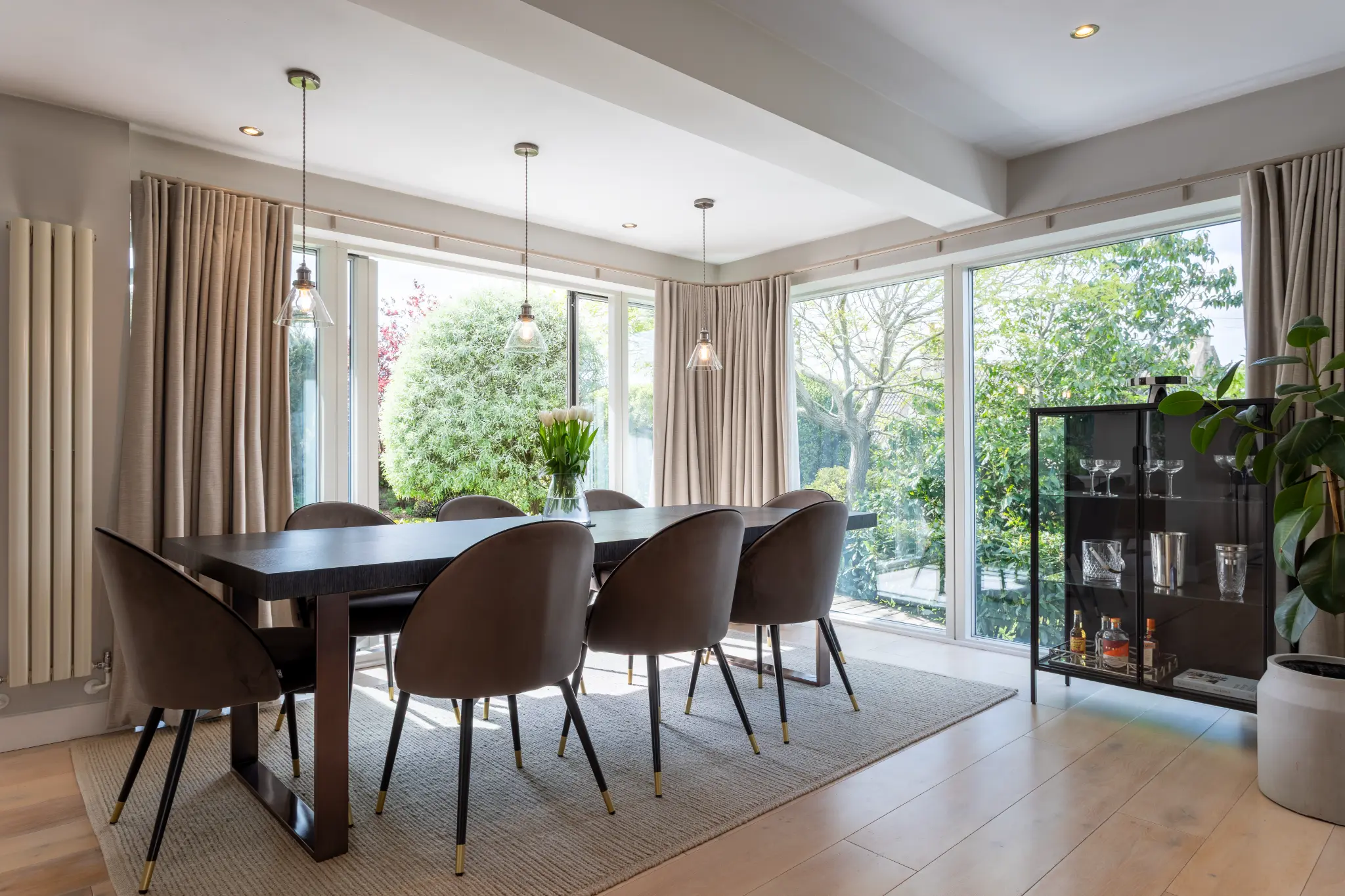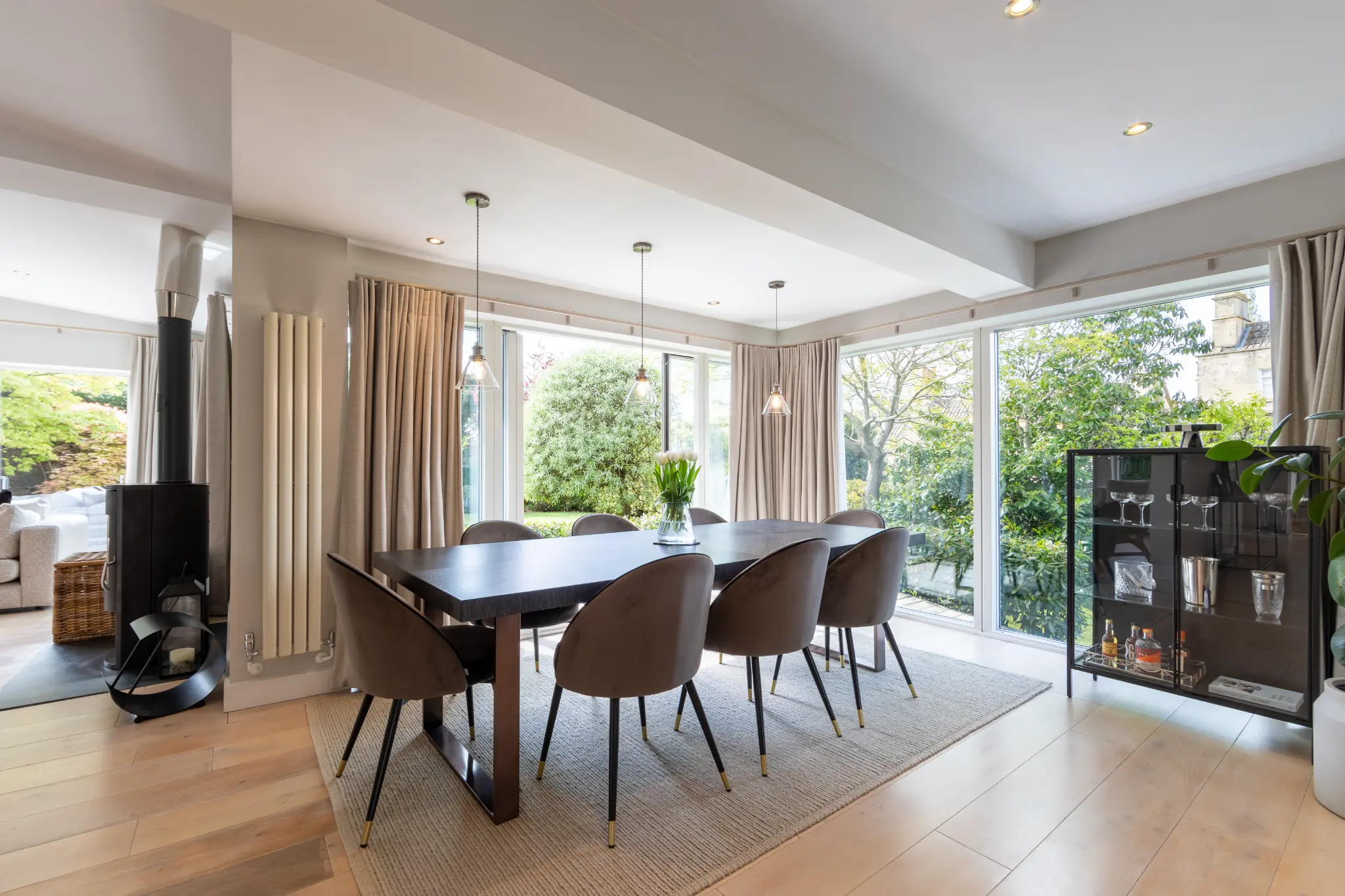 This dining space perfectly illustrates the indoor-outdoor connection that makes Manor Drive special. The garden views through the windows are as much a feature as the room itself — and professional photography ensures both are captured with equal clarity. A smartphone would force you to choose between exposing for the bright exterior or the darker interior; HDR technique captures both.